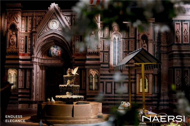 本次大秀以“无界优雅”为主题,NAERSI优雅工坊作为品牌标志性的高级成衣创作核心,本季将创作灵感深入世界文化遗产之城佛罗伦萨,与西方古典匠艺展开深度对话,开启一场溯源“百合之都”的艺术探索之旅。