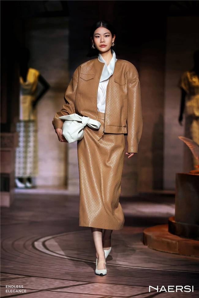 本次大秀也是NAERSI新任品牌创意总监Colin Jiang的瞩目首秀。Colin Jiang是一位将欧洲高级时装严谨血统与东方当代创意相融合的引领者,他的加入标志着NAERSI品牌迈入由国际奢侈品牌人才赋能的全新纪元。Colin Jiang曾于GUCCI罗马总部担任女装设计师,深谙奢侈品牌从创意构想到全球化呈现的运作逻辑;后出任KARL LAGERFELD大中华区创意总监,成功将国际美学落地东方市场。如今,他将十余年奢侈品领域深耕的顶级视野注入NAERSI,重新定义NAERSI的空间美学与设计语言,使NAERSI不止于服装,更得以成为由静雅工艺驱动的当代生活方式的具象写照。
