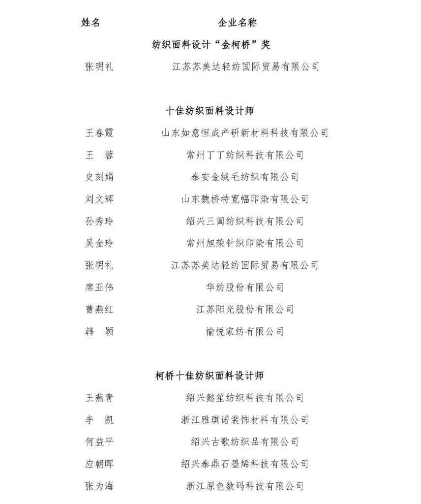 当下,“纺织面料设计师”已成为备受行业认可的新职业,“十佳纺织面料设计师”成为高端纺织设计人才的至高荣誉。柯桥作为全球纺织产业高地,持续集聚资源、搭建平台,打造纺织面料设计人才梯队,为现代化“国际纺都”建设夯实了根基,也为中国纺织现代化产业体系建设注入了活力。