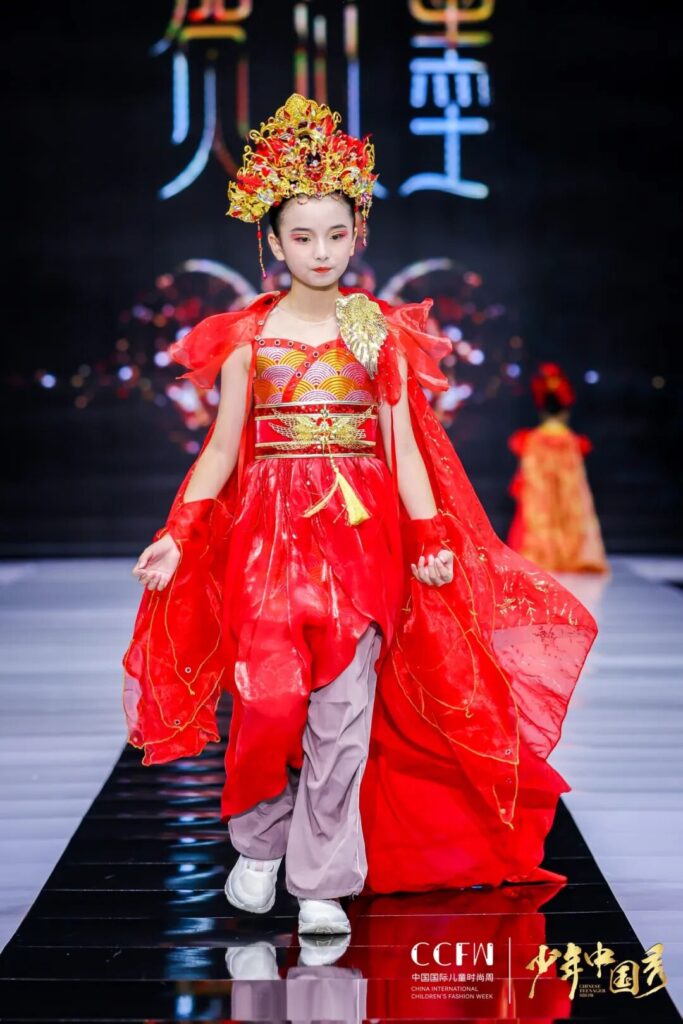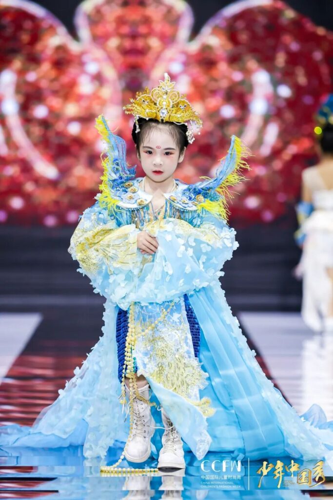本季大秀,设计师团队深入《山海经》的瑰丽世界,将上古神话的奇幻色彩巧妙融入现代童装。大胆的色块碰撞如同神秘山川的召唤,独特的剪裁勾勒出异兽的灵动姿态,精致的刺绣细腻还原神话纹理。