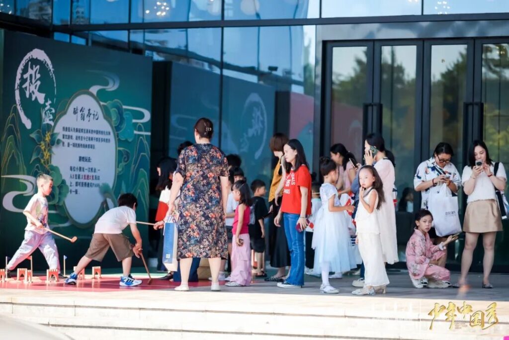 “投壶,射之细也。”在投壶区,孩子们手握羽箭,凝神静气。每当箭矢“当啷”一声落入壶中,周围便响起阵阵掌声。这项源自先秦的礼仪游戏,让孩子们在游戏中感受古人的待客之道与礼仪规范。