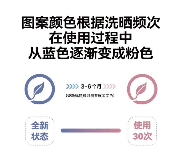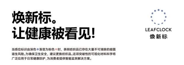 LEAFCLOCK焕新标是一款基于“Lifetracer纤维示踪技术”开发而成的生物标签,可提示产品“健康使用周期”,通过生物标签的颜色变化提醒消费者定期更换,实现内衣的生命周期可视化。焕新标不仅可以引导消费者更健康的生活方式,同时赋能品牌商新的营销卖点提高销售转化,有助于提升长期的复购率和用户粘性。